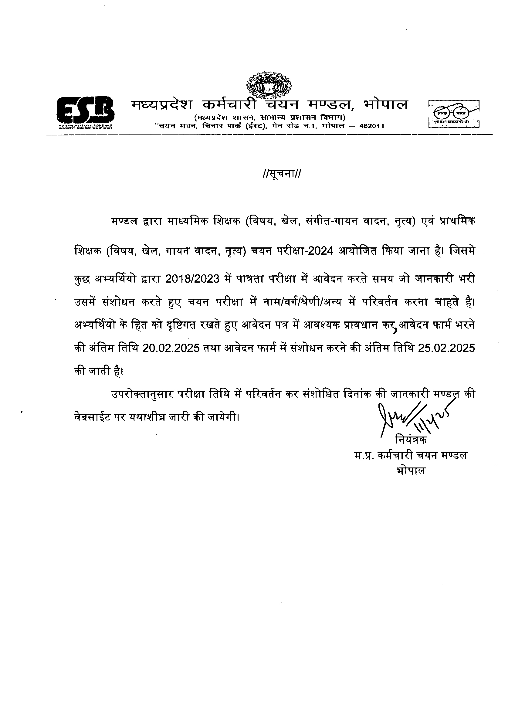 Short Information: Madhya Pradesh Employee Selection Board MPESB ESB Released Middle School and Primary School Madhyamik Shikshak (Vishay, khel and sangeet-vadan), Prathamik Shikshak (Khel, Sangeet-Vadan and Nritya) Under M.P. Govt., School
